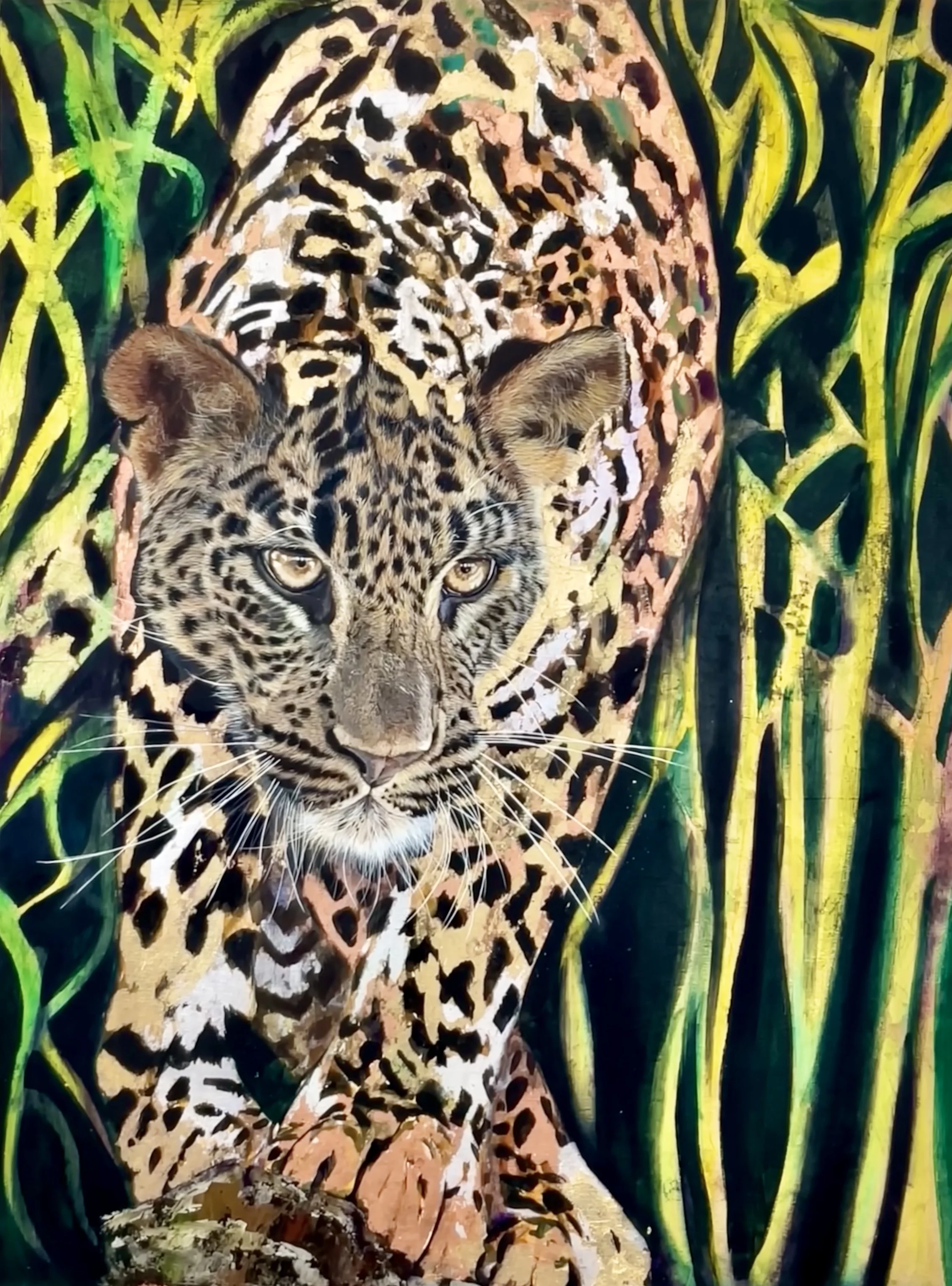 Acrylic, Genuine Silver and Metal Leaf on Linen